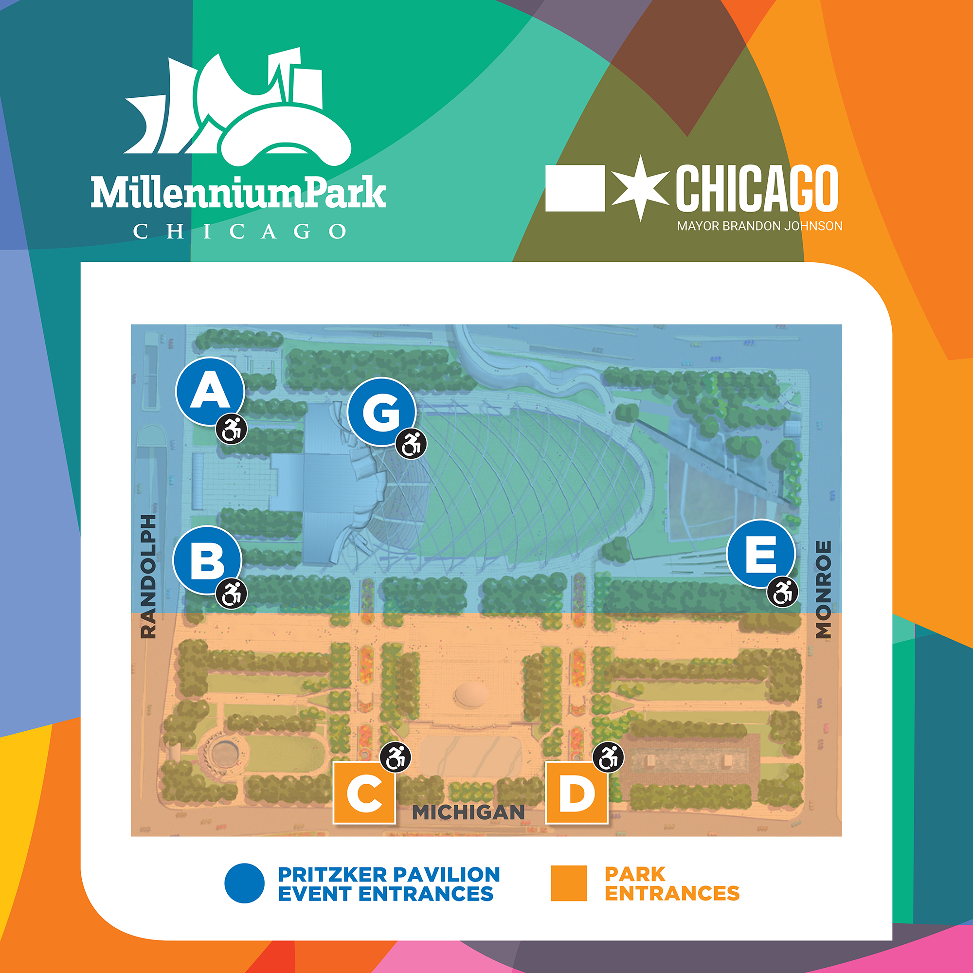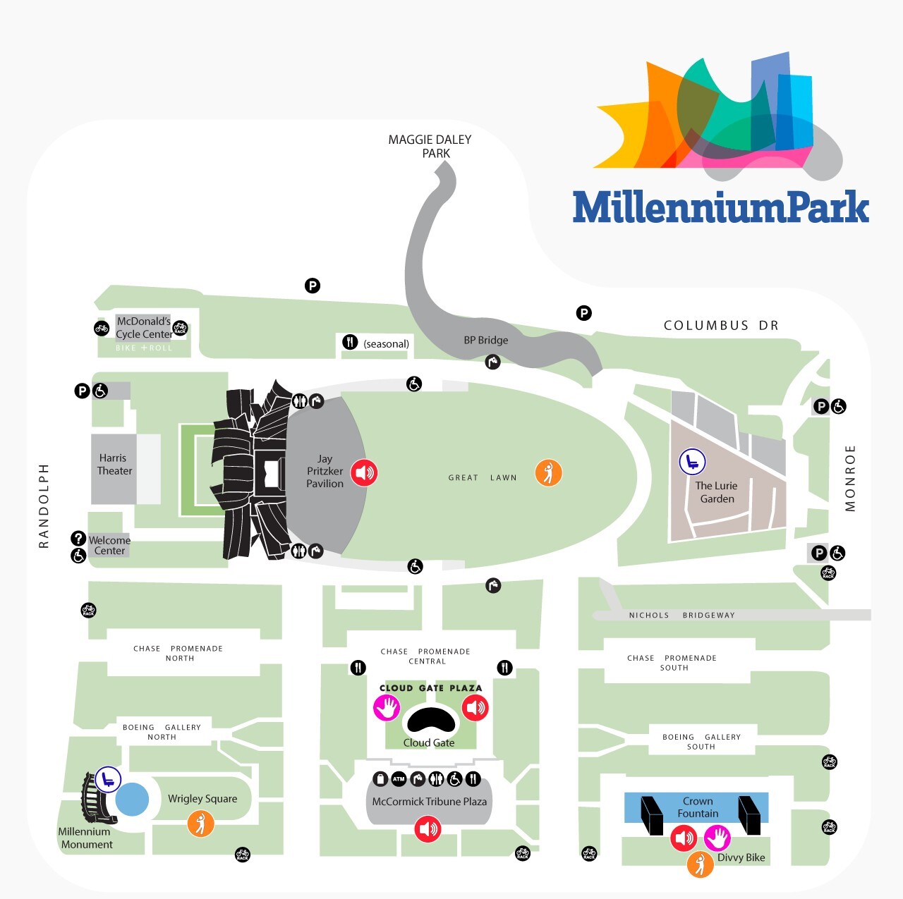 24.5-acre green space with a video display, the reflective "Bean" sculpture & an outdoor theater.